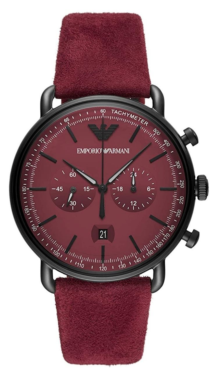Schwarzes Gehäuse – 43mmRotes ZifferblattRotes Armband aus LederQuarzwerk
