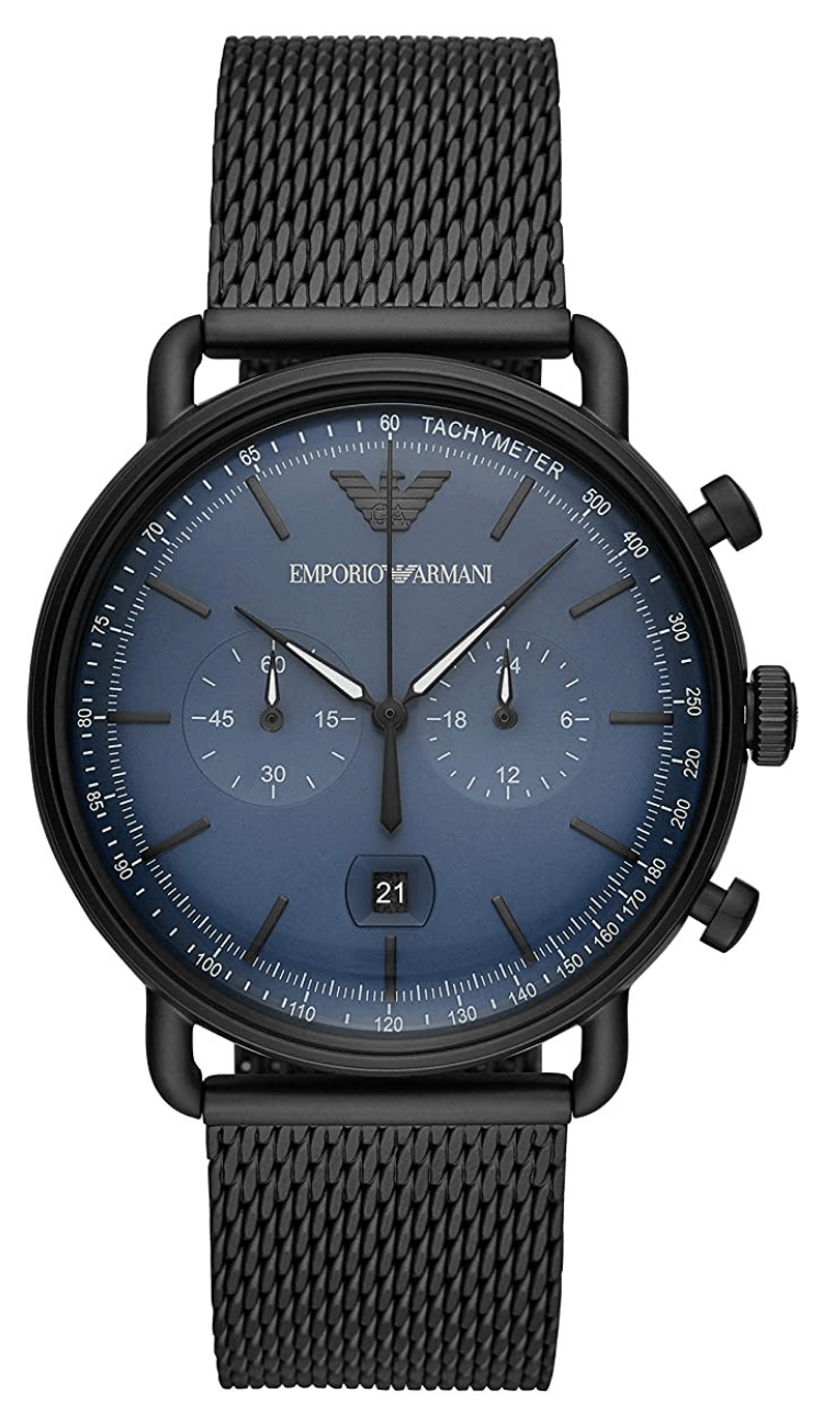 Schwarzes Edelstahlgehäuse 43 mmBlaues ZifferblattSchwarzes EdelstahlbandQuarzwerk